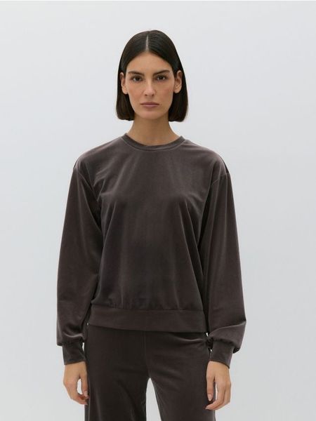 Bluza o swobodnym kroju wykonana z miękkiej welurowej dzianiny.