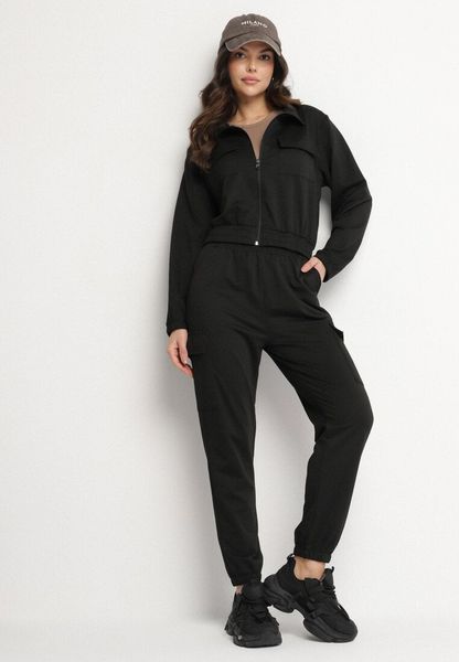 Czarny Komplet Dresowy Cargo Bluza i Spodnie z Kieszeniami Kormilla