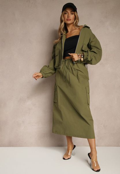 Zielony Komplet z Bawełną Spódnica i Rozpinana Bluza Evorea