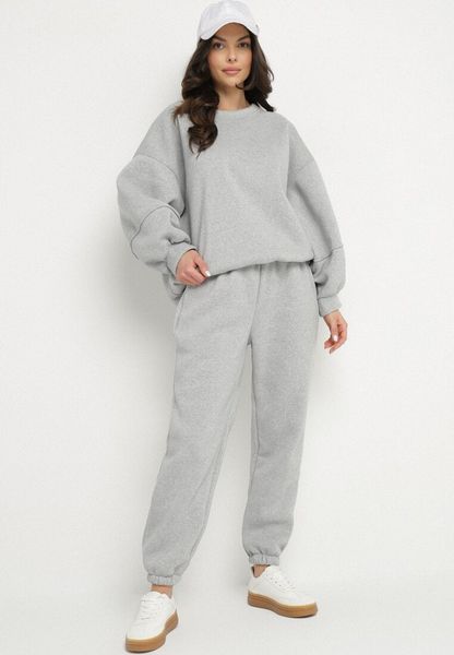 Szary Komplet Dresowy Bluza i Joggery Podszyte Polarem Zibea