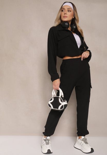 Czarny Komplet Dresowy Spodnie Cargo i Rozpinana Bluza Isovisa