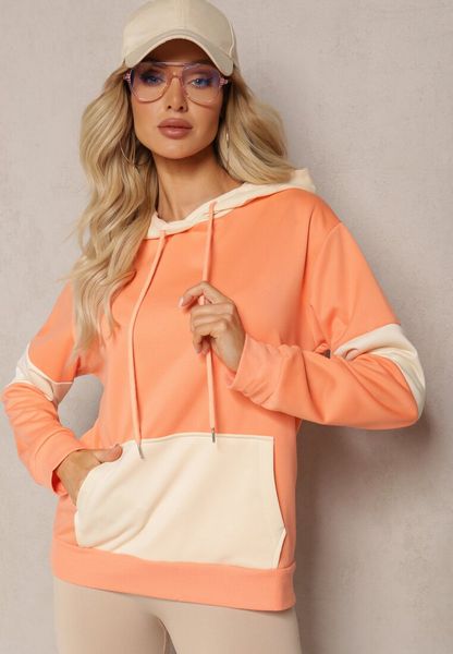 Pomarańczowa Oversizowa Bluza Typu Kangurka z Szeroką Kieszenią i Kapturem Iretha