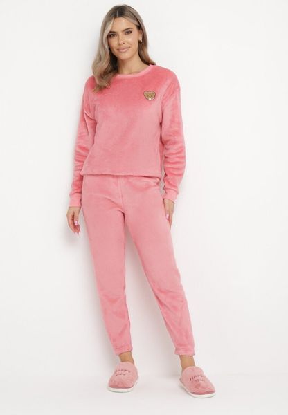 Różowy Dzianinowy Komplet Piżamowy z Bluzą i Spodniami Jogger Javva