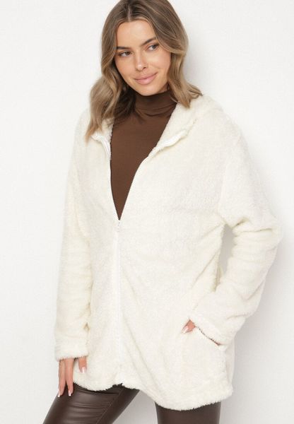 Beżowy Futerkowa Bluza z Kapturem i Suwakiem Sinatila