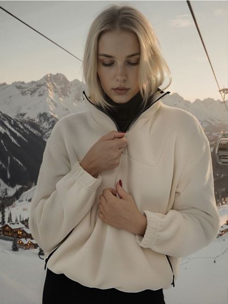 Polarowa bluza z krótkim zamkiem i regulowanym stoperami dołem – kremowy
