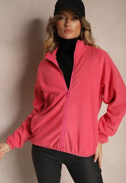 Różowa Bluza z Zapięciem na Suwak Kieszeniami i Stójką Esandria