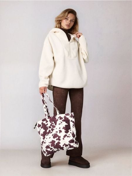 Sinsay – Bluza sherpa z kapturem – kremowy –