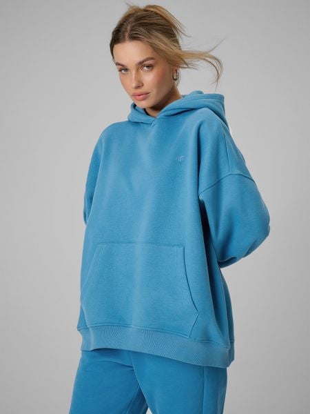 4F Bluza dresowa loose z kapturem damska – niebieska M
