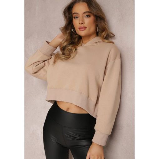 Beżowa Bluza Oversize z Kapturem Sirel