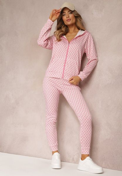 Jasnoróżowy 2-cześciowy Komplet Dresowy z Bluzą i Spodnia Analina
