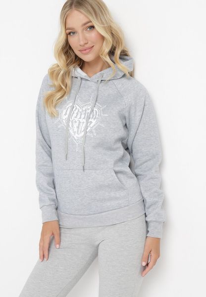 Jasnoszara Bluza z Kapturem i Nadrukiem oraz Ściągaczami Sitta