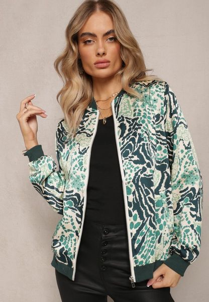 Zielona Bluza w Stylu Bomberki Ozdobiona Abstrakcyjnym Wzorem Terenika