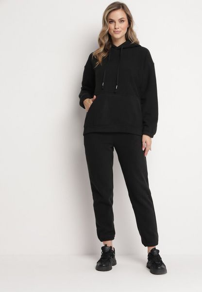 Czarny Dzianinowy Komplet Dresowy 2-częściowy z Bluzą i Spodniami Norikas