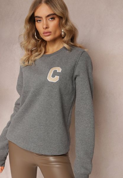 Szara Bluza z Naszywką o Fasonie Zakładanym Przez Głowę Esemia