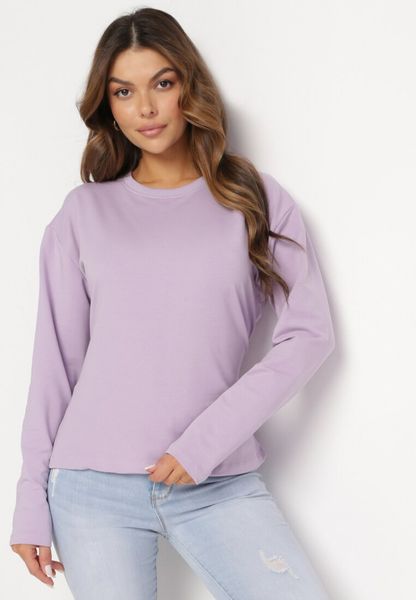 Jasnofioletowa Bawełniana Bluza z Długim Rękawem i Ozdobnym Wiązaniem Pinada