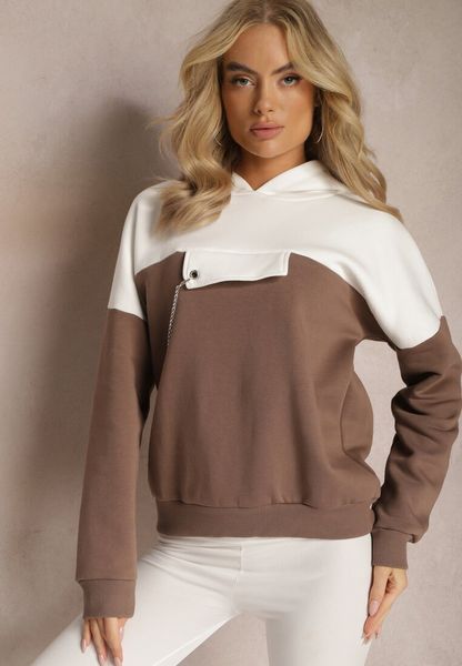 Brązowa Bawełniana Bluza z Kapturem i Łańcuszkiem Ambriella