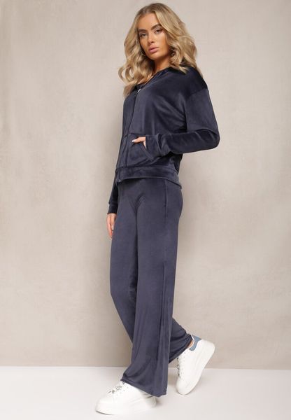 Granatowy Welurowy Komplet Dresowy z Bluzą i Szerokimi Spodniami Anelivs