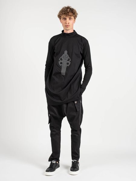 UnisexLuźny, dłuższy fason (Oversize)Z półgolfemZ przodu nadruk 3dPrzy dekolcie ozdobiona zamkiemZ asymetrycznym dołemPo bokach rozcięciaZ rozcięciem w rękawie na kciukZ ozdobnymi przeszyciami z tyłuWykonana z połączenia dwóch wysokogatunkowych tkaninRękawy prążkowaneWyprodukowano we Włoszech