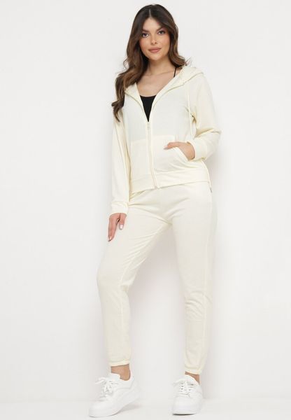 Jasnożółty Klasyczny Komplet Dresowy z Bluzą z Kapturem i Prostymi Spodniami Neiba