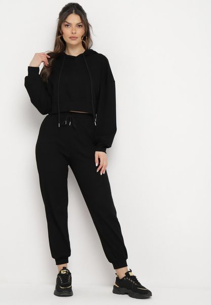 Czarny Komplet Dresowy Bluza z Kapturem i Spodnie Joggery Famiana