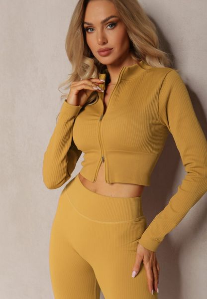 Żółta Prążkowana Bluza o Krótkim Fasonie Dwoma Suwakami Aloue