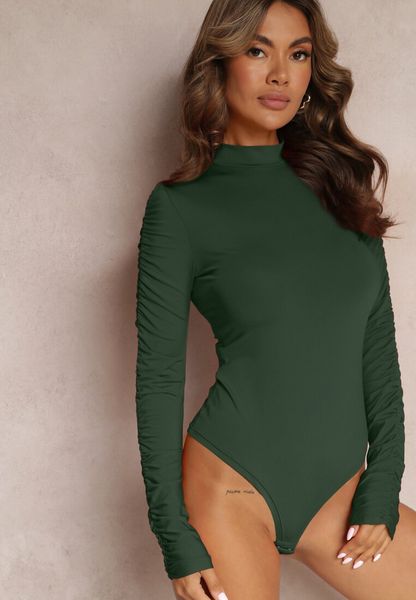 Zielone Body z Długimi Marszczonymi Rękawami Pinna