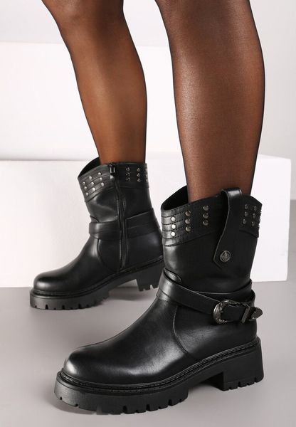 Czarne Botki w Stylu Motocyklowym z Klamrą i Nitami Erithany