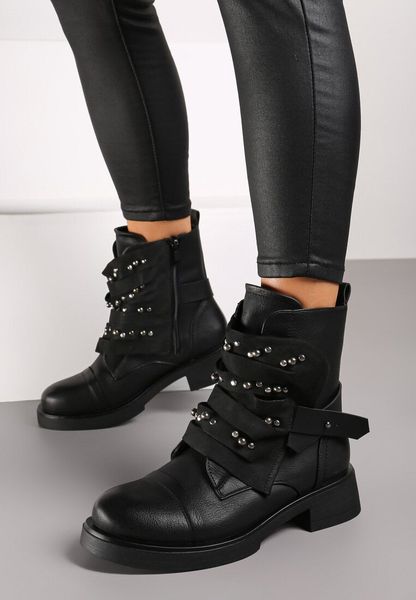 Czarne Botki w Streetwearowym Stylu Ozdobione Nitami i Naszywką Lirelina