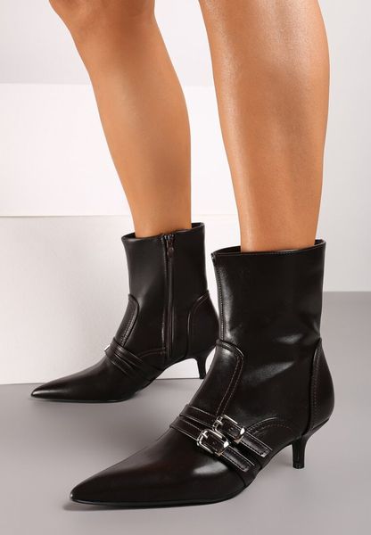 Brązowe Botki z Ozdobnymi Klamrami na Paskach i Obcasie Stiletto Liatria
