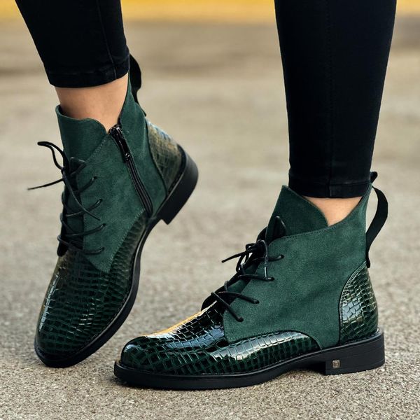 Zielone płaskie botki damskie Potocki 12080
