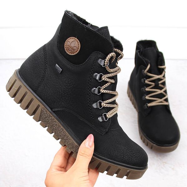 Wodoodporne trapery damskie botki czarne Rieker Y3433-00