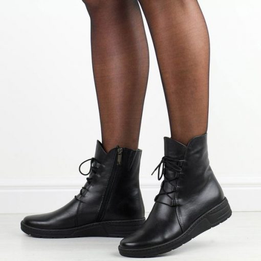 Czarne skórzane Polskie botki damskie zimowe Gregors 1093