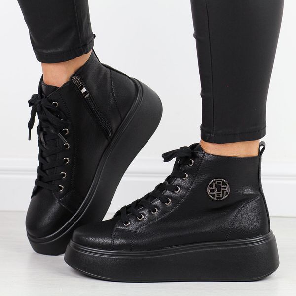 Czarne skórzane botki damskie na platformie Filippo Dbt6338/25
