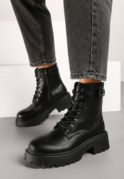 Czarne Botki Workery Vices z Ozdobną Sprzączką przy Cholewce Deosia