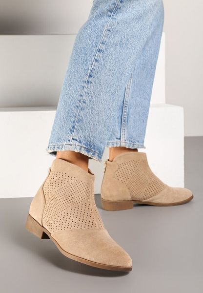 Beżowe Botki Ażurowe Vices z Imitacji Zamszu Selandria