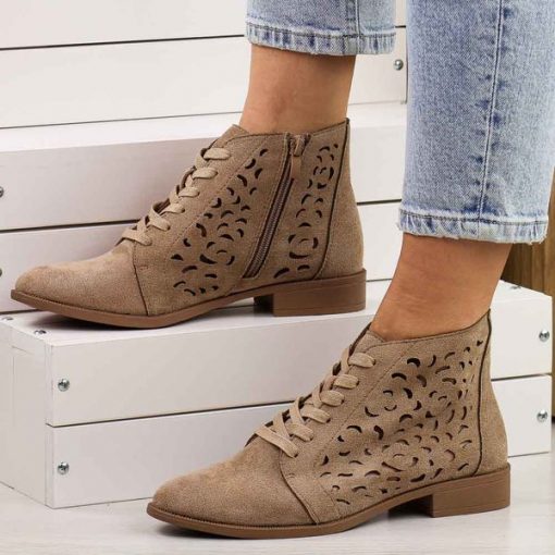 Te beżowe ażurowe botki damskiesą idealnym wyborem na wiosnę, jesień oraz mniej upalne dni letnie, a także na różne okazje. Ich cholewka wykonana z materiału zamszopodobnego. Ażurowany design sprawia, że buty są przewiewne, co przyczynia się do wygody noszenia przez dłuższy czas. Wkładka skórzana gwarantuje miękkość i komfort podczas użytkowania, a umiarkowanie niski obcas zapewnia stabilność […]