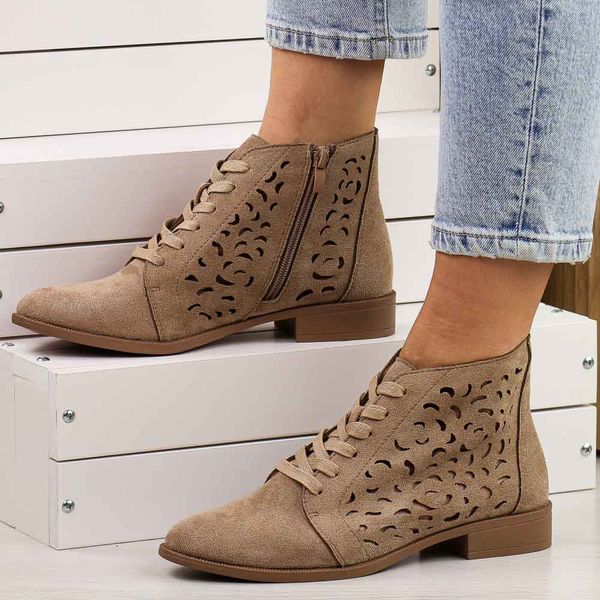 Beżowe zamszowe botki damskie M.Daszyński Am65-108