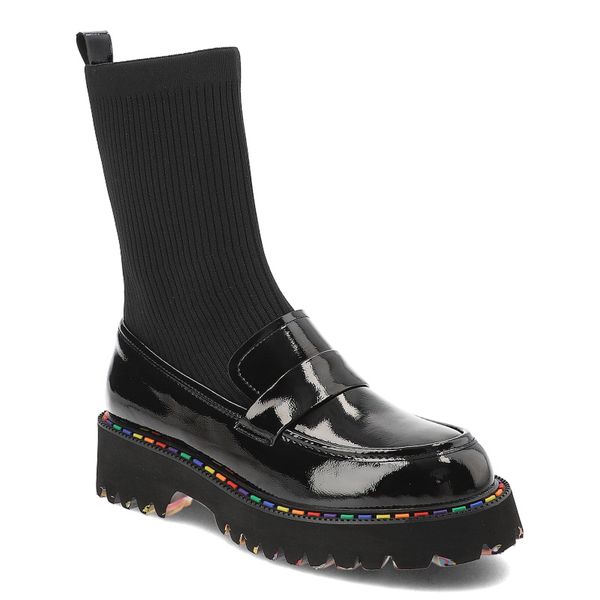 Czarne Botki Artiker Stylowe Obuwie Damskie Ze Skarpetkową Cholewką