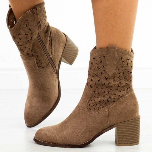 Coffee jesienne zamszowe ażurowe botki damskie na obcasie S.Barski 51-125