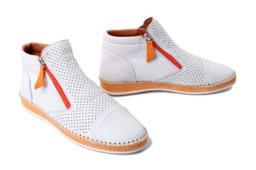 Trzewiki letnie damskie. Naturalna skóra. Perforowana cholewka. Skórzana, wymienna wkładka. Zapięcie na dwa zamki. Podeszwa PU.