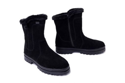 Botki damskie. Skórzana cholewka. Kołnierz z miękkim wypełnieniem. Ocieplone futerkiem. Wyjmowana wkładka. Membrana RiekerTEX. Zapięcie na zamek. Elastyczna, antypoślizgowa podeszwa.