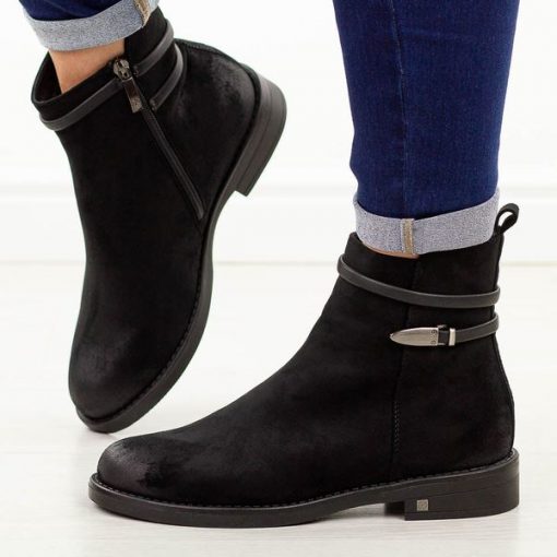 Czarne płaskie botki damskieto praktyczne i eleganckie obuwie idealne na chłodną jesień oraz zimę. Wykonane z wysokiej jakości materiału zamszopodobnego, prezentują się stylowo i ponadczasowo. Cholewka ozdobiona subtelnym detalem w górnej części nadaje im delikatnej elegancji. Zapinane na suwak, gwarantują wygodę zakładania i zdejmowania, a okrągły nosek zapewnia komfort noszenia nawet przez wiele godzin. Wnętrze botków […]