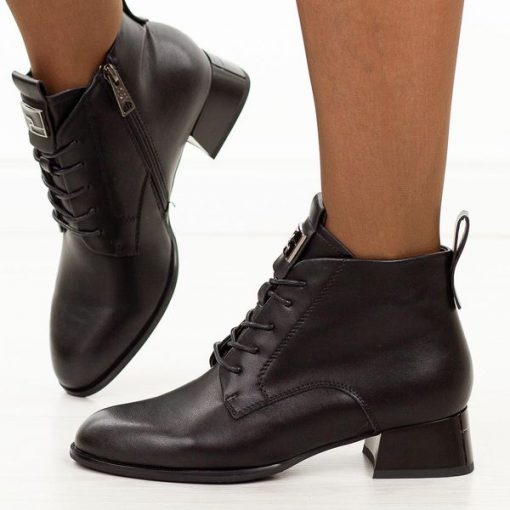 Czarne skórzane botki damskie na obcasie Vinceza 66805