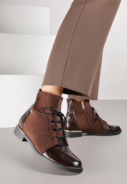 Brązowe Botki Trzewiki Vices Ozdobione Lakierowanymi Elementami Afridde