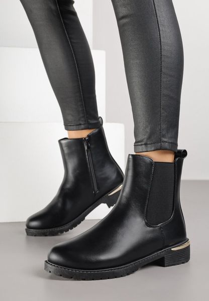 Czarne Botki Sztyblety Ozdobione Elastycznym Elementem Clasina