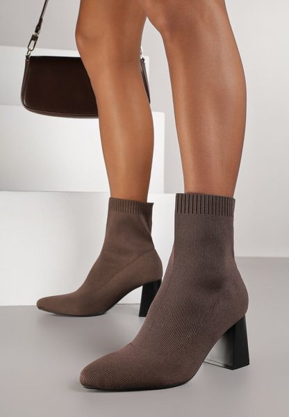 Brązowe Botki Vices na Geometrycznym Obcasie z Elastyczną Cholewką Adinelle