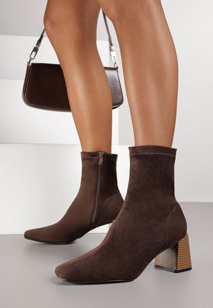 Brązowe Botki Vices na Stożkowym Obcasie z Kwadratowym Noskiem Aziste