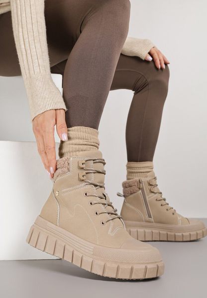 Ciemnobeżowe Botki Typu Trapery Vices na Grubej Tłoczonej Podeszwie Anerrive