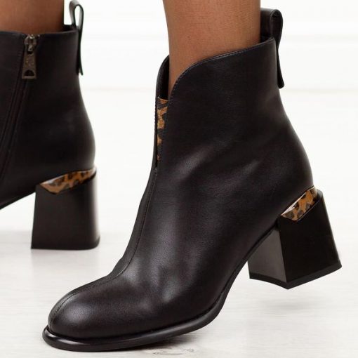 Czarne skórzane botki damskie na obcasie Vinceza 66811