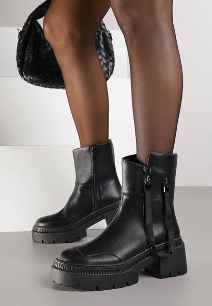 Czarne Botki Vices z Ozdobną Tasiemką Rivavie